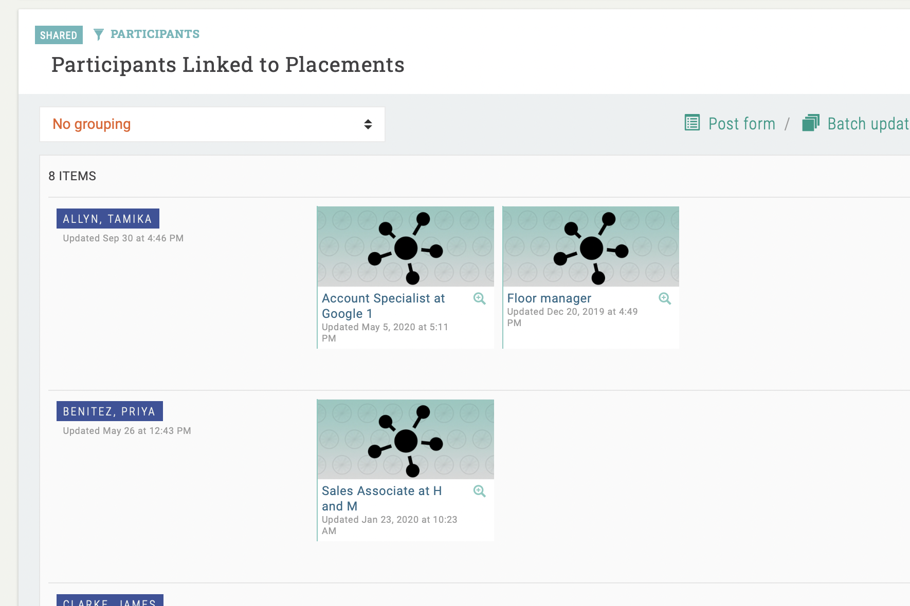 Track participants, employers, job openings, placements, and generate funder reports automatically.