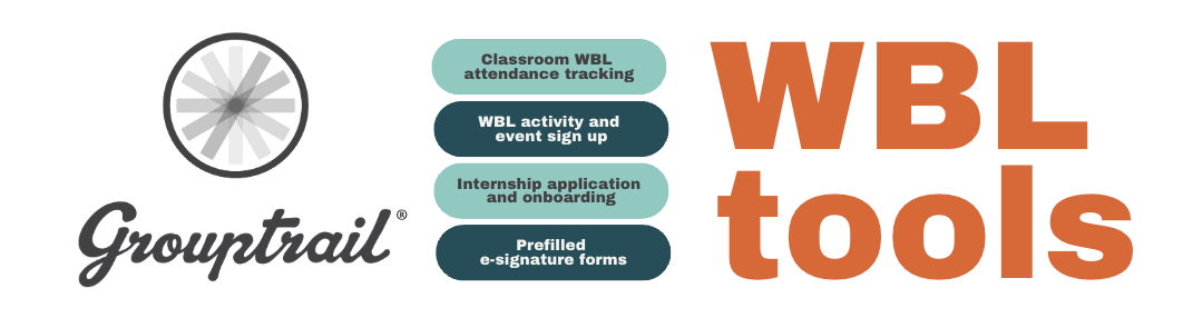 - Conference session (Friday, April 4th at 8 am in Evergreen A on the 1st Floor): Manage and scale WBL opportunities efficiently and effectively with Grouptrail! Come to our conference session and learn how to save time while scaling up work-based learning opportunities and leveraging AI in a transparent equitable way for your students using Grouptrail’s tools for student self-registration and WBL sign up, internship management, pre-filled e-signature permissions and agreement forms you can use now for free, bulk texting reminders and individual participation engagement, and classroom WBL attendance tracking. And we’ll be sharing a major announcement about a new career and college readiness resource coming soon that your students will actually love using!
